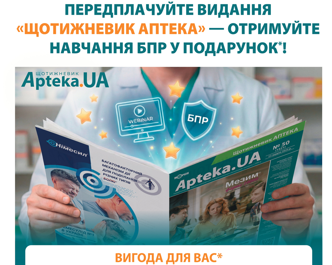 ПЕРЕДПЛАЧУЙТЕ ВИДАННЯ «ЩОТИЖНЕВИК АПТЕКА» — ОТРИМУЙТЕ НАВЧАННЯ БПР У ПОДАРУНОК*!
