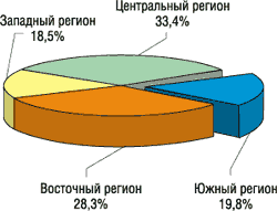Рис. 1. Доля торговых точек Южного региона в общем количестве торговых точек Украины в 2001 г.