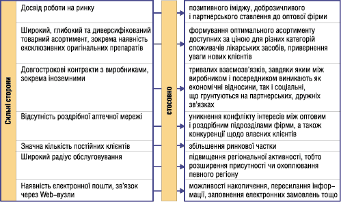 Рис. 2. Приклад розпізнавання сильних і слабких сторін оптової фармацевтичної фірми