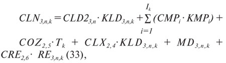 DC21 3,n = CPB 2,1 · KPВ 3,n + CST 2,2 · KST 3,n + CPW 2,3 · KX 3,n + CLX 2,4 · KLX 3,n + COZ 2,5 · KOZ 3,n + CRA 2,6 · KRA 3,n (31.2),