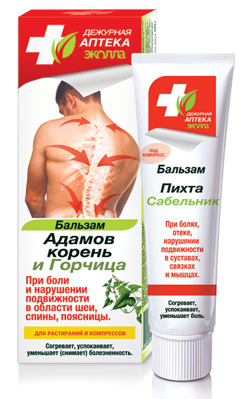 Во время зимнего сезонного обострения заболеваний опорно-двигательного аппарата актуальными в аптечном ассортименте будут бальзамы «Адамов корень и горчица», а также «Пихта и сабельник»,предназначенные для уменьшения выраженности боли, отечности суставов и мышц.