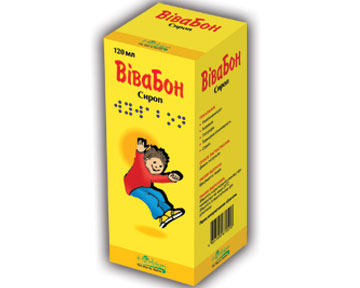 ВІВАБОН. Склад. 5 мл сиропу містять густі екстракти плодів фінікової пальми (1:7) (Phonix sylvestris) 60 мг; плодів ембліки лікарської (1:6) (Emblica officinalis) 35 мг; коріння зимової вишні (1:6) (Withania somnifera) 12,5 мг; плодів перцю довгого (1:8) (Piper longum) 5 мг; листя центели азійської (1:6) (Centella asiatica) 12,5 мг; плодів амомуму шиловидного (1:8) (Amomoum subulatum) 5 мг; кореневища імбиру лікарського (1:6) (Zingiber officinalis) 10 мг; насіння пажитника грецького (1:8) (Trigonella foenum graecum) 10 мг; коріння волошки (1:8) (Cetaurea behan) 10 мг. Лікарська форма. Сироп. Фармакотерапевтична група. Тонізуючі засоби. Код АТС. А13А. Показання. Уповільнений ріст, анорексія, гіпотрофія, підвищена втомлюваність, стреси. Протипоказання. Підвищена чутливість до компонентів препарату, цукровий діабет. Дитячий вік до 3 років. Період вагітності або годування груддю. Побічні ефекти. Можливі алергічні реакції (кропив’янка, свербіж). У разі виникнення будь-яких незвичних реакцій слід припинити прийом препарату і звернутися до лікаря. Назва і місцезнаходження виробника. «Хербіон Пакистан Прайвет Лімітед», Пакистан. 30/28, промислова зона Корангі, Карачі, Пакистан. Р.п. № UA/10786/01/01 з 15.07.2010 р. по 15.07.2015 р.