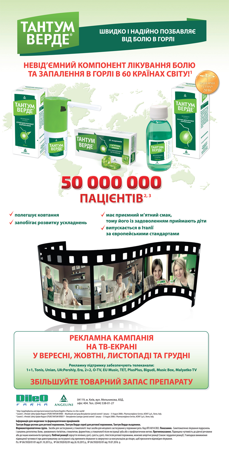 Бажаєте завжди бути в курсі останніх новин фармацевтичної галузі? Тоді підписуйтесь на «Щотижневик АПТЕКА» в соціальних мережах! Тантум Верде