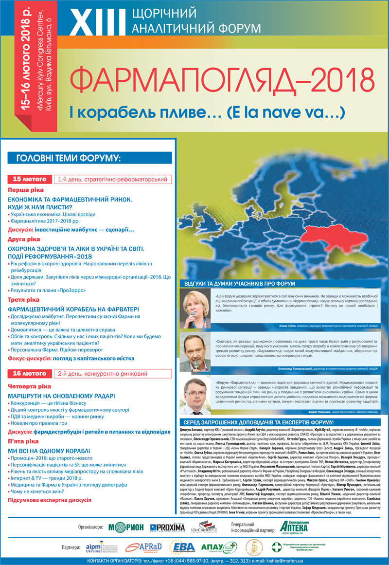 Xlll щорічний аналітичний форум «Фармапогляд–2018. І корабель пливе… (E la nave va…)»
