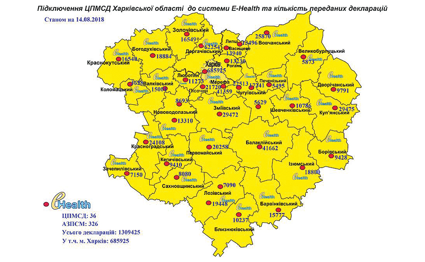 Відповідно до даних, оприлюднених на порталі електронної системи охорони здоров’я, у Харківській обл. вже підписано 1 млн 317 тис. 751 декларація. На другому місці — Дніпропетровська обл., у якій підписано 1 млн 256 тис. 412 декларацій. Замикає трійку лідерів Львівська обл., у якій підписано 1 млн 92 тис. 384 декларації.