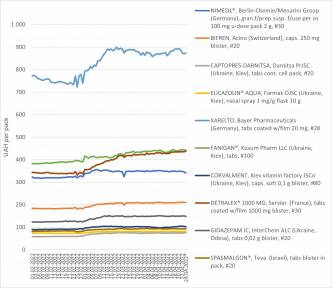 It is worth noting that, despite the increased demand for drugs and supply restrictions, there is no significant increase in prices (Fig. 5). However, price growth is still observed. Thus, for the top-10 SKUs by sales volume in monetary terms from 24.02.2022, the average price increase as of 24.04.2022 relative to the prewar period (compared to the price as of 01.02.2022) is 18%. At the same time, the prices have been stabilizing in recent days and stopped growing. We remind that the State Service of Ukraine on Food Safety and Consumer Protection introduced price controls on socially important products, including food, fuel, and medicines.