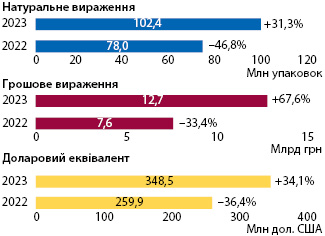 | Натуральне вираження, млн упаковок | ||||||||||||||