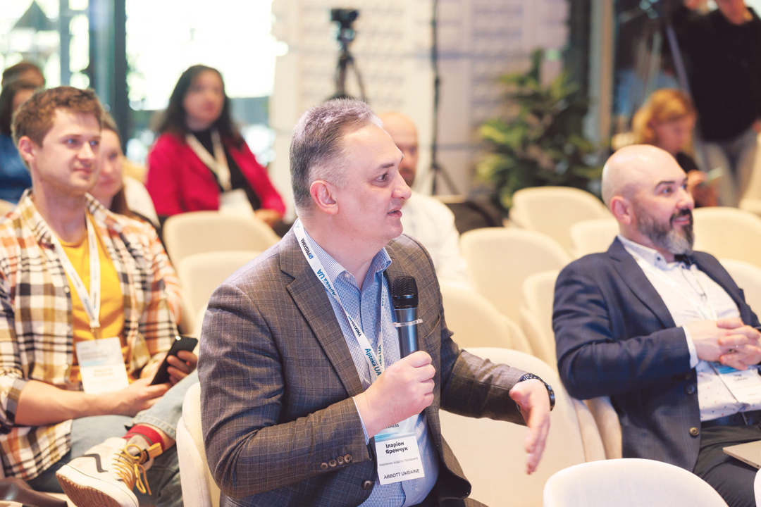 На початку виступу спікер провів опитування серед аудиторії конференції, яке показало, що більшість компаній в Україні в наступні 5 років планує або збільшувати, або залишити на такому ж рівні розмір польової команди. У той же час на багатьох ринках світу, навпаки, розмір польових команд зменшується. Результати опитування щодо того, як буде виглядати комунікація з лікарями у 2030 р., продемонстрували, що більшість вважає, що суттєво нічого не зміниться, а другою за популярністю була відповідь, що комунікація відбуватиметься винятково за допомогою ШІ.