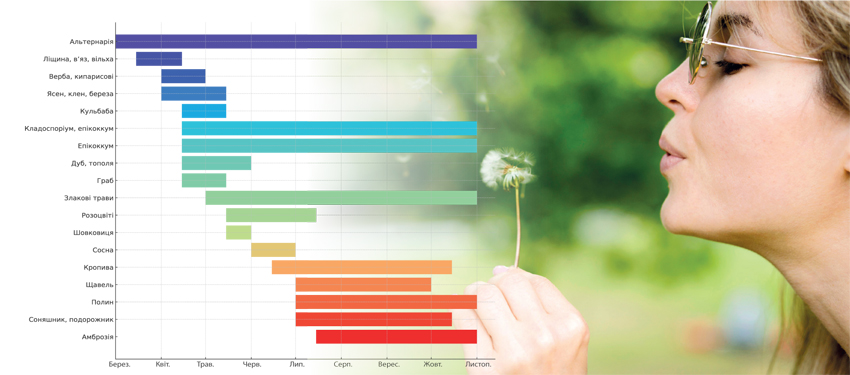 Глобальне підвищення рівня алергічних захворювань становить серйозну проблему для охорони здоров’я. За прогнозами Всесвітньої алергологічної організації (World Allergy Organization — WAO), кількість пацієнтів з цією патологією збільшується на 50% кожні 10 років і досягне близько 4 млрд до 2050 р. В Україні відмічається подібна тенденція, що може бути пов’язано з високою чутливістю населення до повітряних алергенів (Родінкова В.В. та ін., 2019), зокрема пилку рослин. А алергічний риніт, викликаний пилком рослин, є найпоширенішою алергічною патологією в більшості країн (Guryanova S.V. et al., 2022). У цьому контексті фенологічний моніторинг цвітіння рослин є обґрунтованим рішенням для прогнозування пилкового навантаження, що може дати можливість оптимізувати лікування та обрати належний варіант терапевтичної допомоги.Сезон алергії в розпалі