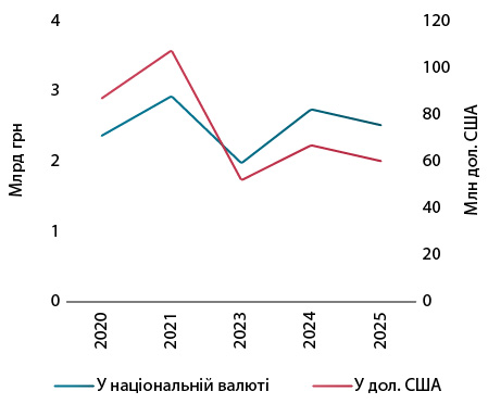 За даними сейлз-хаусу «Ocean Media Plus», обсяги інвестицій у телевізійну рекламу фармацевтичної категорії за підсумками 9 міс 2025 р. оцінюються у 2,5 млрд грн* (реальні витрати без урахування податків), що на 8,2% менше, ніж за аналогічний період попереднього року. У доларовому еквіваленті ця сума становить близько 60 млн дол. США. Порівняно з динамікою останніх років, хоча у гривневому вираженні обсяги інвестицій у рекламу фармбрендів знаходяться приблизно на рівні 2020 р., у доларовому еквіваленті цей показник є помітно нижчим, що вказує на вплив інфляційних процесів (рис. 1).