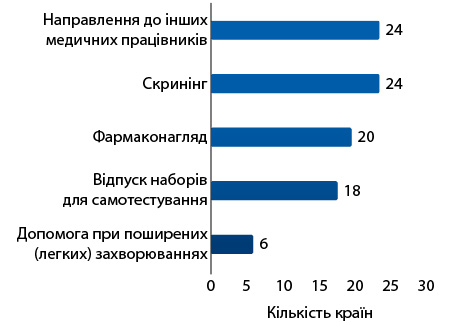 Фармацевти можуть сприяти ранньому виявленню захворювань, вчасно порадивши пацієнту звернутися до спеціаліста (рис. 3). Фармацевтичні послуги можуть охоплювати обстеження на наявність певних захворювань (наприклад цукрового діабету, артеріальної гіпертензії, ВІЛ). Аптеки можуть надавати ці послуги шляхом тестування в аптеці, зокрема у співпраці з лікарями загальної практики або органами охорони здоров’я. Ці послуги приносять користь пацієнтам, пропонуючи легший доступ до ранньої діагностики. Також фармацевти можуть надавати послуги з лікування поширених недуг, що знижує навантаження на сімейних лікарів. Фармацевт також відіграє ключову роль у системі фармаконагляду, оскільки він безпосередньо контактує з пацієнтами та може виявити побічні реакції або інші проблеми, пов’язані з лікарськими засобами.