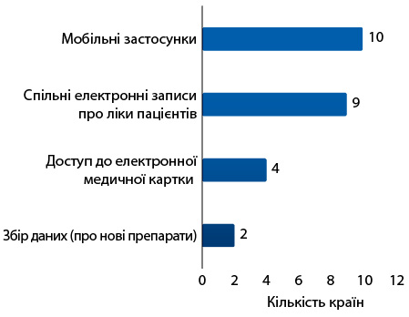До цифрових послуг належать збір даних про ефективність лікарських засобів, доступ до спільних електронних записів, мобільні додатки для здоров’я та телеконсультації (рис. 6). Ці послуги, інтегровані в національні цифрові системи охорони здоров’я або програмне забезпечення для аптек, можуть підтримувати комунікацію в режимі реального часу та безперервність надання медичної допомоги. Доступ фармацевтів до електронних медичних даних підвищує безпеку та координацію, а цифрові інструменти покращують самоконтроль. Ці інновації дають суттєві переваги: кращі результати, поліпшене дотримання режиму лікування та більшу залученість пацієнтів.