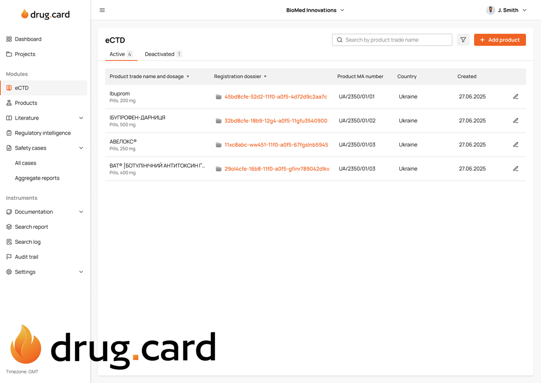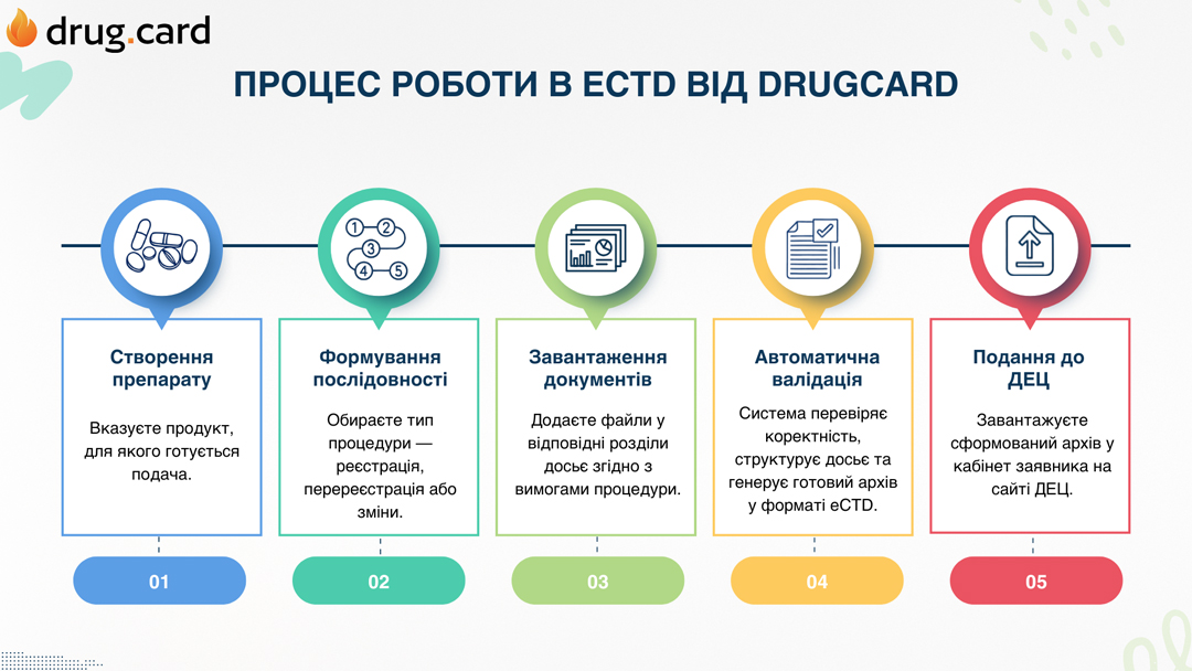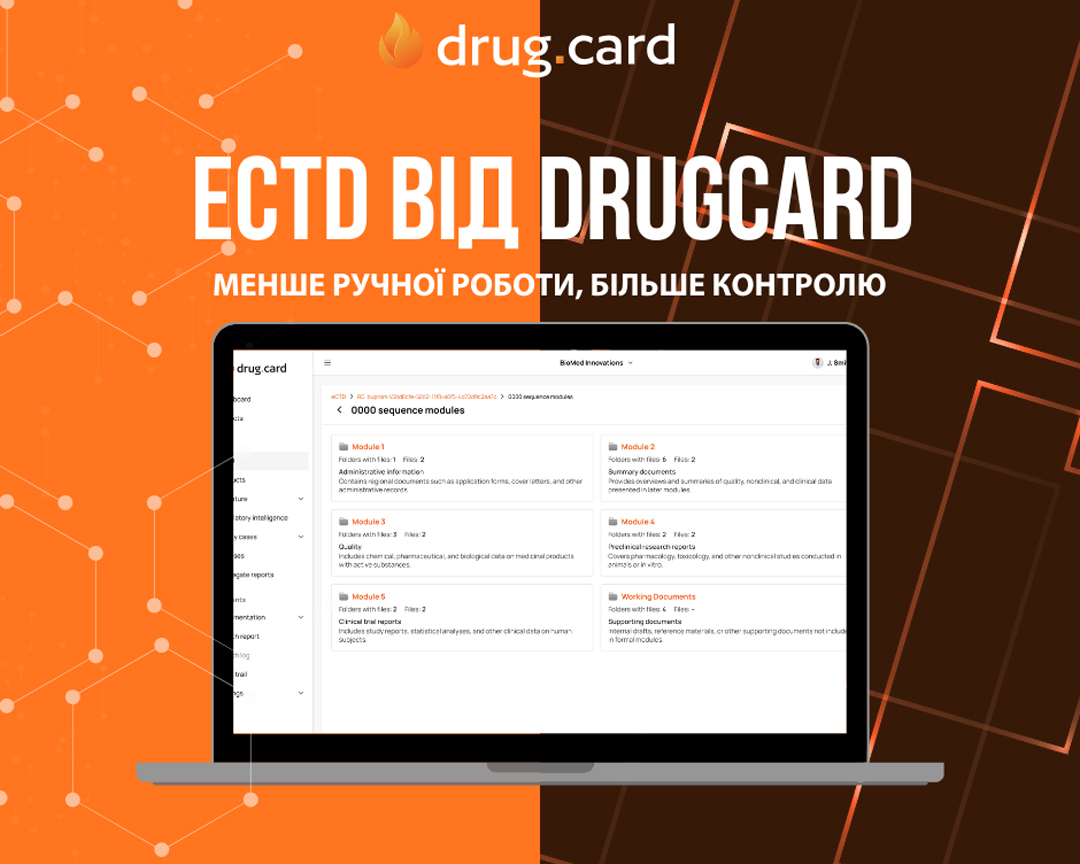 Зручність, швидкість, надійність — цими 3 словами можна описати eCTD від DrugCard. Це приклад того, як українські IT-рішення допомагають фарміндустрії переходити на цифрові стандарти, а спеціалістам з реєстрації керувати своїми eCTD-досьє швидко, безпечно й без зайвої складності — усе на одній платформі.