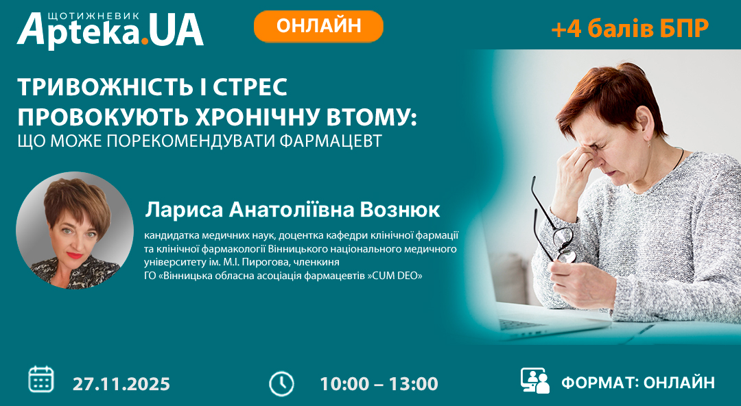 Запрошуємо на майстер-клас «Тривожність та стрес провокують хронічну втому: що може порекомендувати фармацевт»