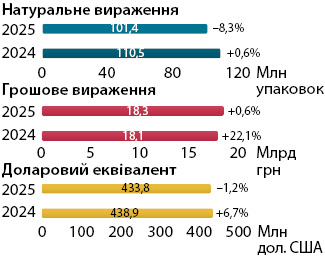 | Натуральне вираження, млн упаковок | ||||||||||||||