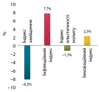Рис. 2. Індикатори зміни роздрібної реалізації товарів «аптечного кошика» в грошовому вираженні за підсумками листопада 2025 р. порівняно з аналогічним періодом попереднього року