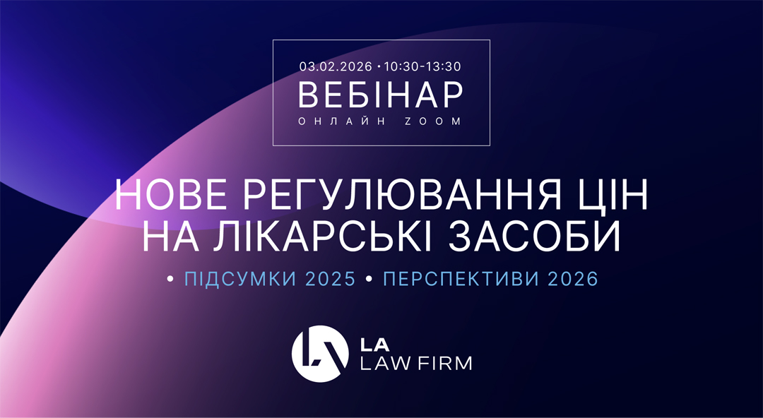 LA Law Firm (Legal Alliance) запрошує колег долучитися до вебінару «Нове регулювання цін на лікарські засоби. Підсумки 2025. Перспективи 2026», присвяченого аналізу актуальних змін у ціновому регулюванні, ключовим викликам та очікуванням у 2026 р.