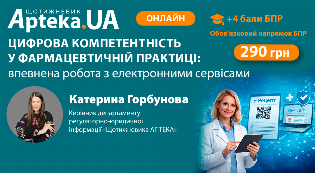 Команда «Щотижневика АПТЕКА» продовжує серію освітніх онлайн-заходів для фахівців фармацевтичної галузі та запрошує взяти участь у майстер-класі «Цифрова компетентність у фармацевтичній практиці: впевнена робота з електронними сервісами».
