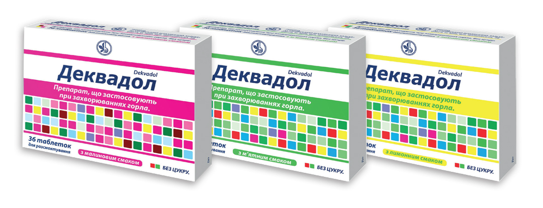 Лікарський засіб у формі таблеток для розсмоктування ДЕКВАДОЛ від АТ «Київський вітамінний завод» розроблений як комплексний препарат для реалізації концепції повноцінного терапевтичного циклу, дія якого не обмежується поверхневим ефектом, а спрямована на ключові ланки патогенезу — руйнування клітинних мембран патогенів та широкий антимікробний спектр завдяки синергічній дії 2 активних компонентів:
