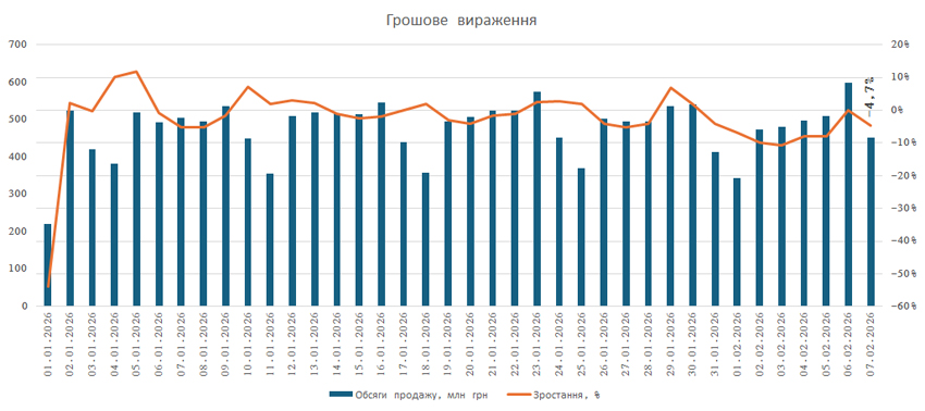 Рис. 2. Поденна динаміка обсягів аптечного продажу лікарських засобів з 1.01.2026 до 7.02.2026 р.