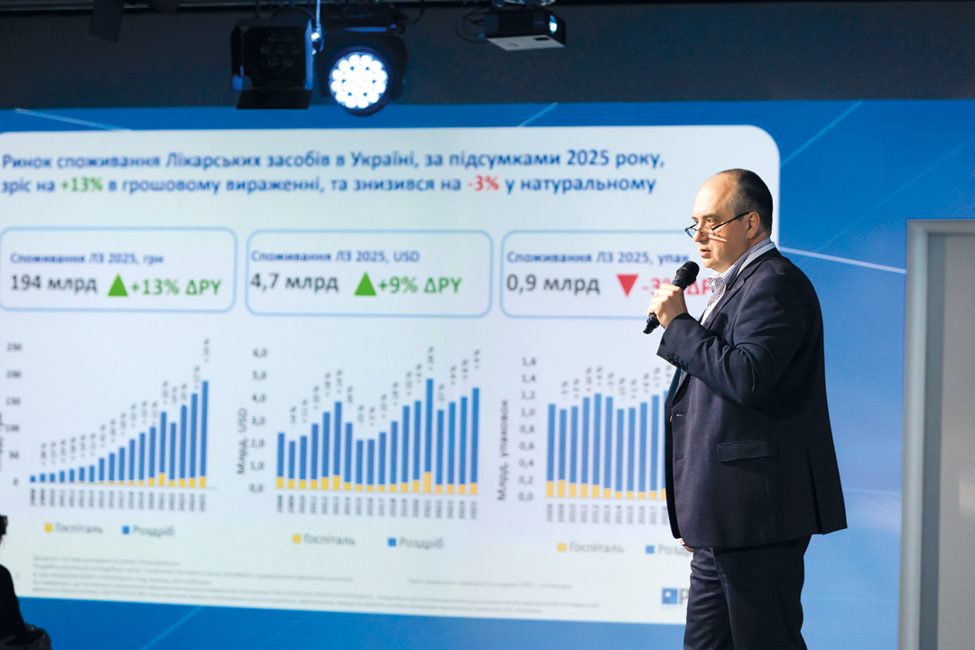 За підсумками 2025 р., загальні обсяги споживання лікарських засобів (роздріб + шпиталь) становили 194 млрд грн та збільшилися на 13% у національній валюті порівняно з аналогічним періодом минулого року. У доларовому еквіваленті зростання становить 9%, а загальні обсяги — 4,7 млрд дол. Водночас споживання в натуральному вираженні зменшилося на 3% і становило 0,9 млрд упаковок.