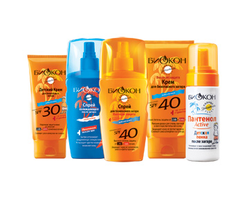 В ассортименте солнцезащитной серии «БИОКОН» — средства для безопасного загара с разными солнцезащитными факторами (англ. sun protection factor — SPF) для людей с чувствительностью к солнечным лучам, а также средства после загара. Продукты этой серии удобны в использовании, обеспечивают надежную защиту от вредного спектра солнечного излучения, защищают от УФ-лучей даже во время купания, подчеркивают красоту тела.