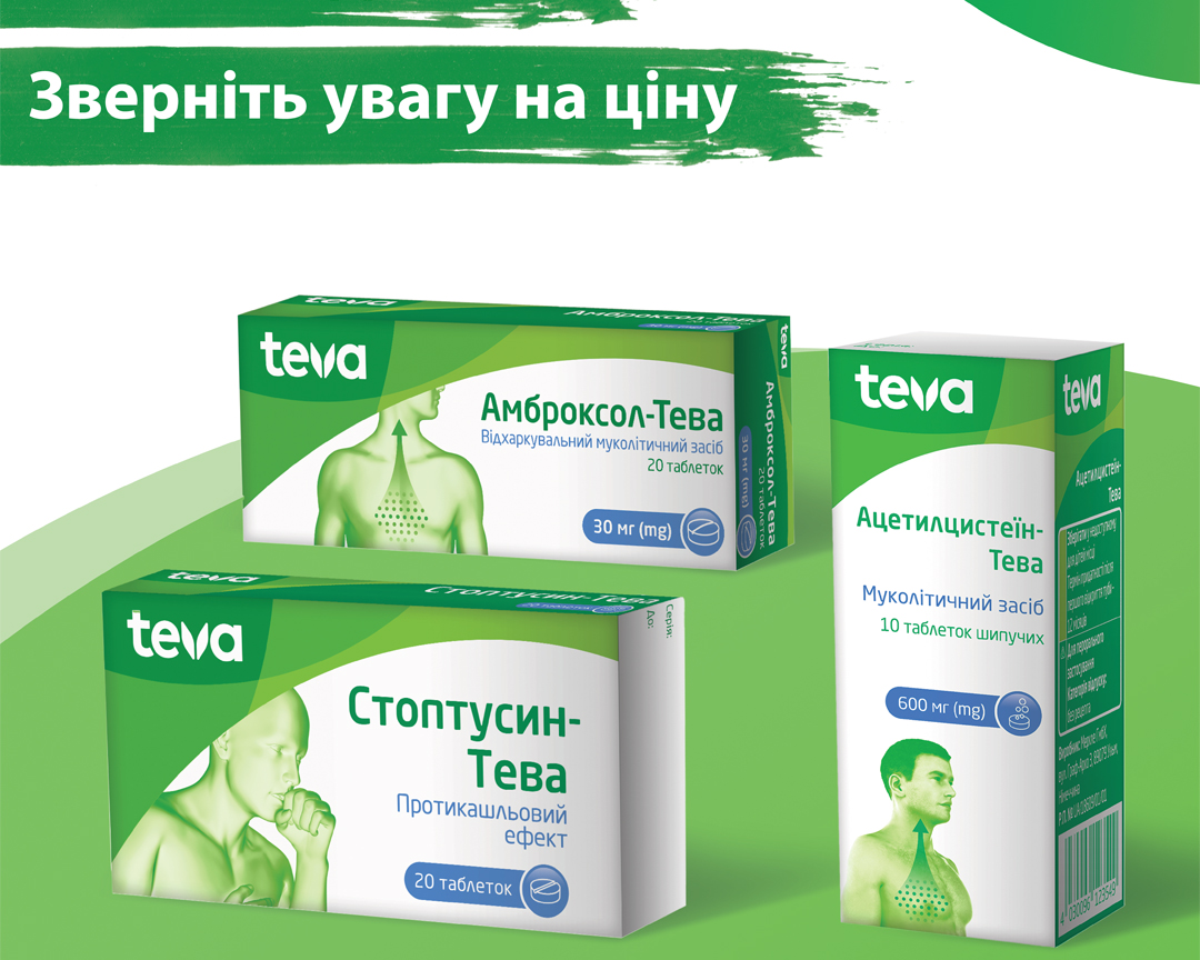 Амброксол-Тева. Ацетилцистеїн-Тева. Стоптусин-Тева